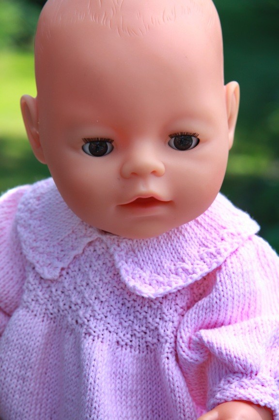 Eline ... gekleed in mooie een mooi jurkje gebreid in zachte Egyptische katoen. Katoen is gesponnen, geweven en gekleurd sinds de prehistorie, nu wordt het beschouwd als het beste van alle katoen door haar duurzaamheid en luxueuze gevoel. Stel u eens voor hoe mooi uw pop zal zijn in dit eenvoudige prachtige jurkje.