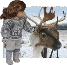 På bildet ovenfor studerer American Girl dukken Rebecca helleristninger av reinsdyr i Altafjorden. Flere tusen helleristninger er tydelige spor etter bosettinger fra 2500 - 6000 år siden. Og hun liker godt reinsdyr helleristningene som er ganske maken til motivet på genseren hennes.