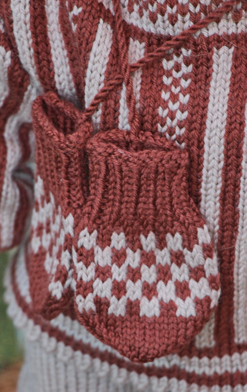 To change the pattern a little I have knitted mittens and shoes with small squares, well fitted to these clothes I think.