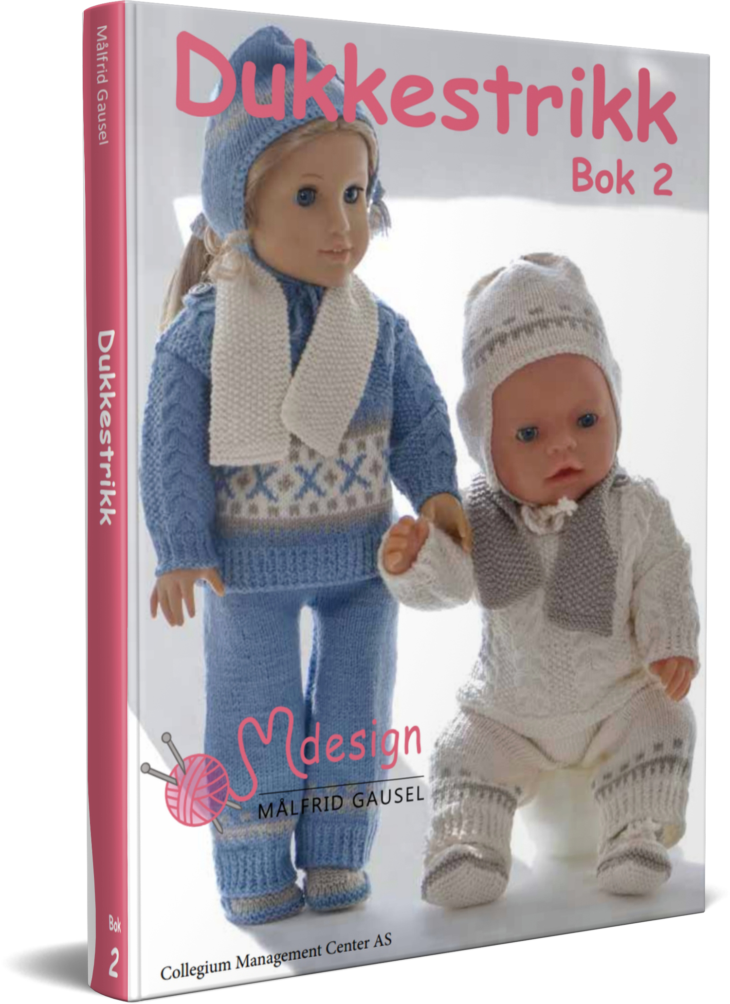 Bok 1"Mange har lenge spurt etter en ny bok! Det gleder meg å motta så mye positiv tilbakemelding, det er kjempekoselig at dere igjen gjerne vil ha en ny bok. Jeg koser meg når jeg designer disse små dukkeklærne i vissheten om at du blir veldig glad når de kommer. Jeg har nå designet en del mønster som bare er tiltenkt boken, og håper disse vil bli godt mottatt! Jeg håper du finner frem pinner og garn! At du får både «strikkelyst» og «strikkeglede»! Kanskje du, som jeg, syns det er spennende å se hvordan flittige hender med pinner og garn tryller frem deilige, små plagg til dukkene! " LYKKE TIL! Kjøp Bok 1 og 2 samlet Vanlig pris for begge kr. 777