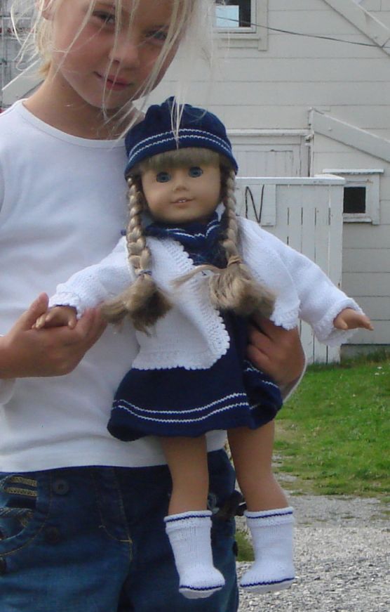 Tolle Kleider für Ihre Puppe. Dieses Muster passt auch anderen Puppen von 43 – 46 cm Größe, wie z. B. Baby Born und Chou Chou. (Klicken Sie auf das Bild, und sehen Sie sich weitere und auch größere Bilder an) Puppenstrickmuster für 0048 GULLTOPP: Kleid, Unterhose, Socken und Haarband. US $7.90 |